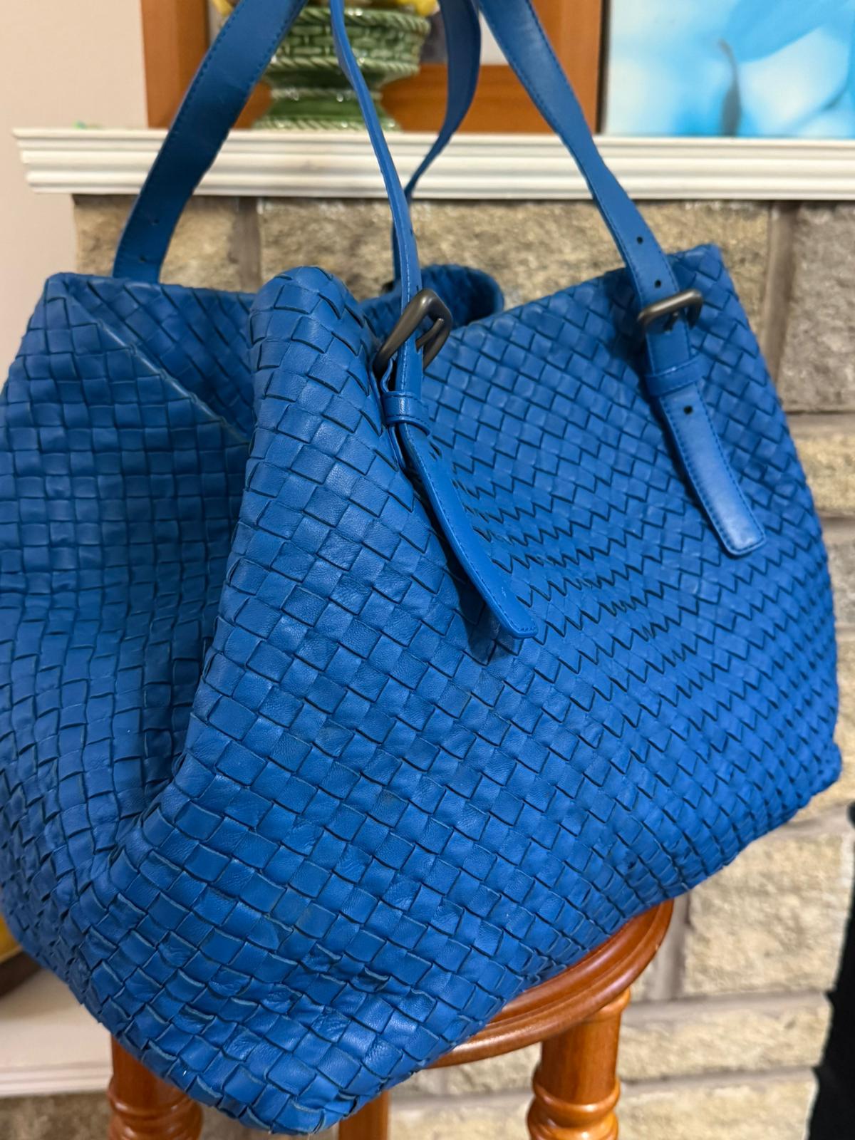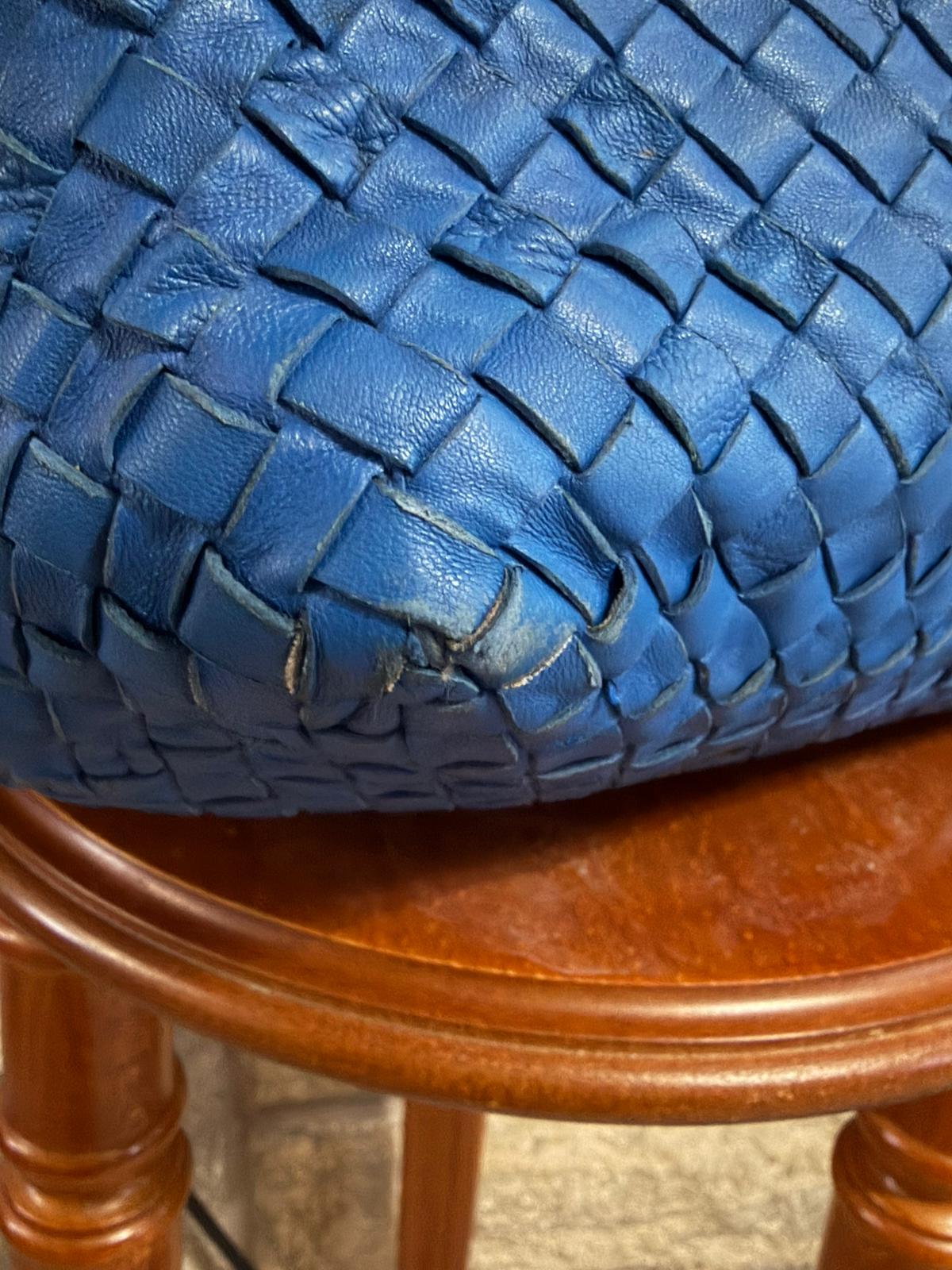 . Condition is good. It has some creases and scuffs on the exterior leather, slight loss of shape, some wear on the edges. Interior has some moderate odor and discolouration and some stain. Handles and straps have some creases and possible cracks. Hardwares have minor scratches.