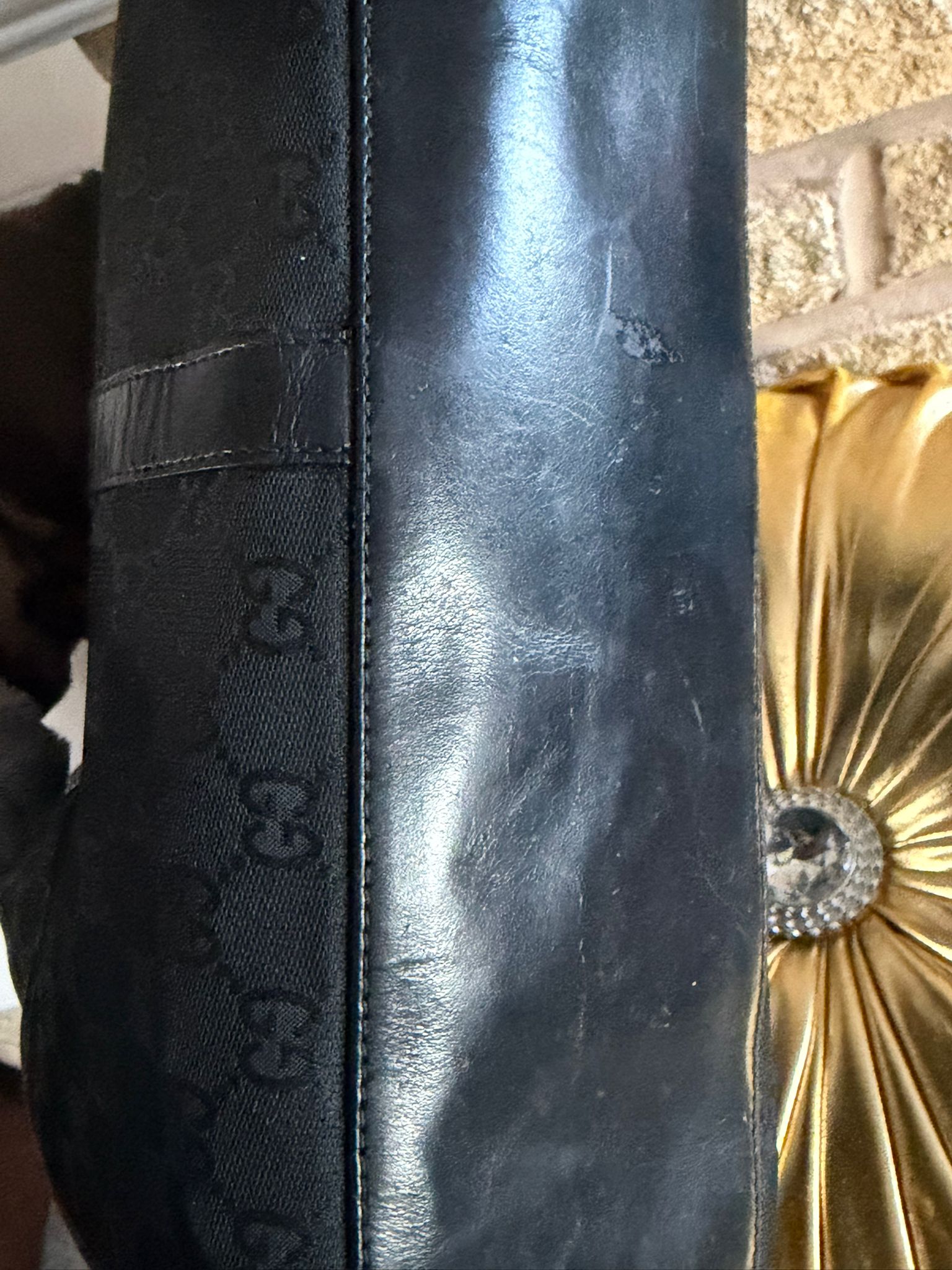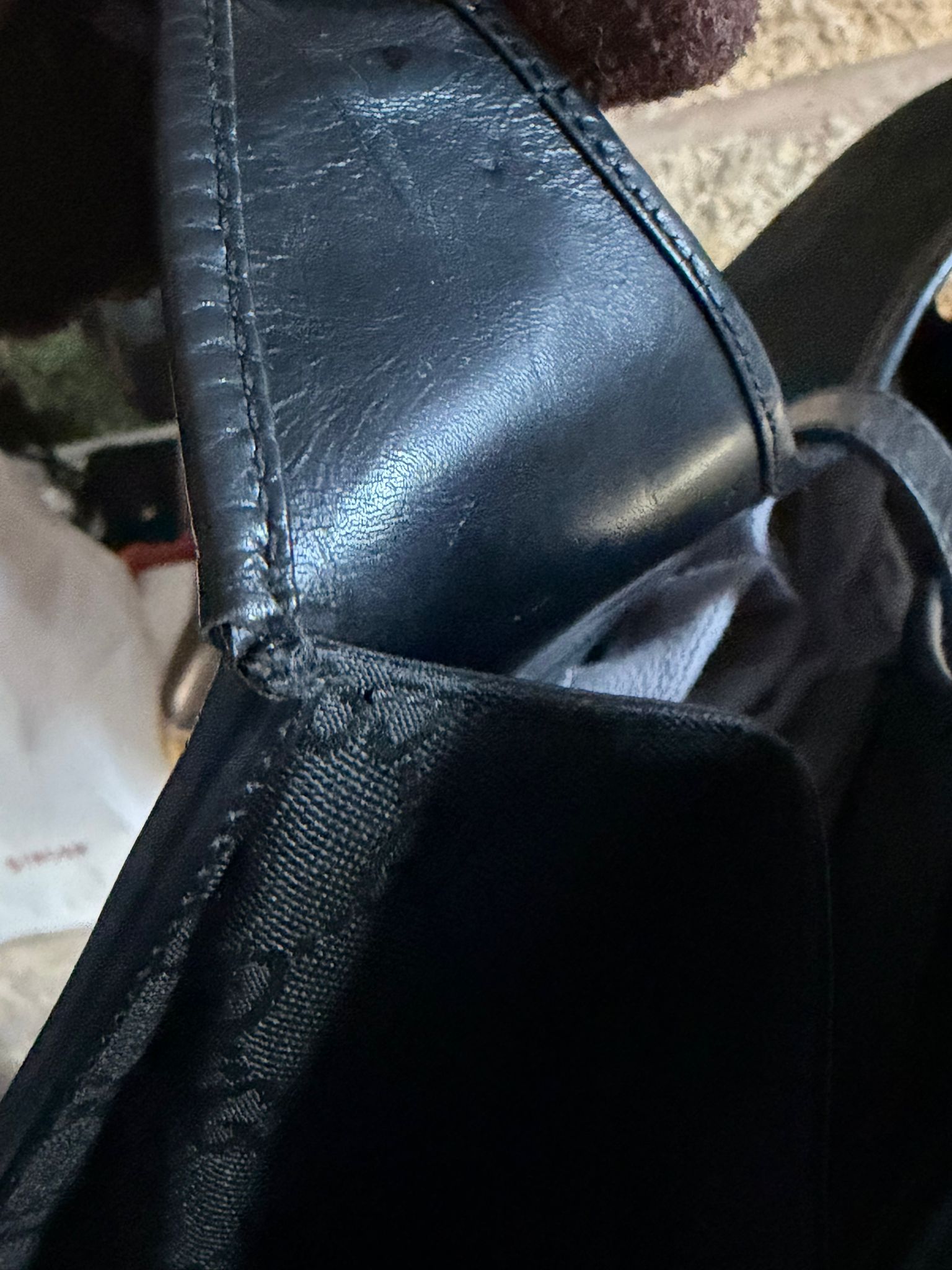 Condition is Fair because it has some corner tear. It also has general wear and tear on the leather of the exterior. There is hardware oxidation.