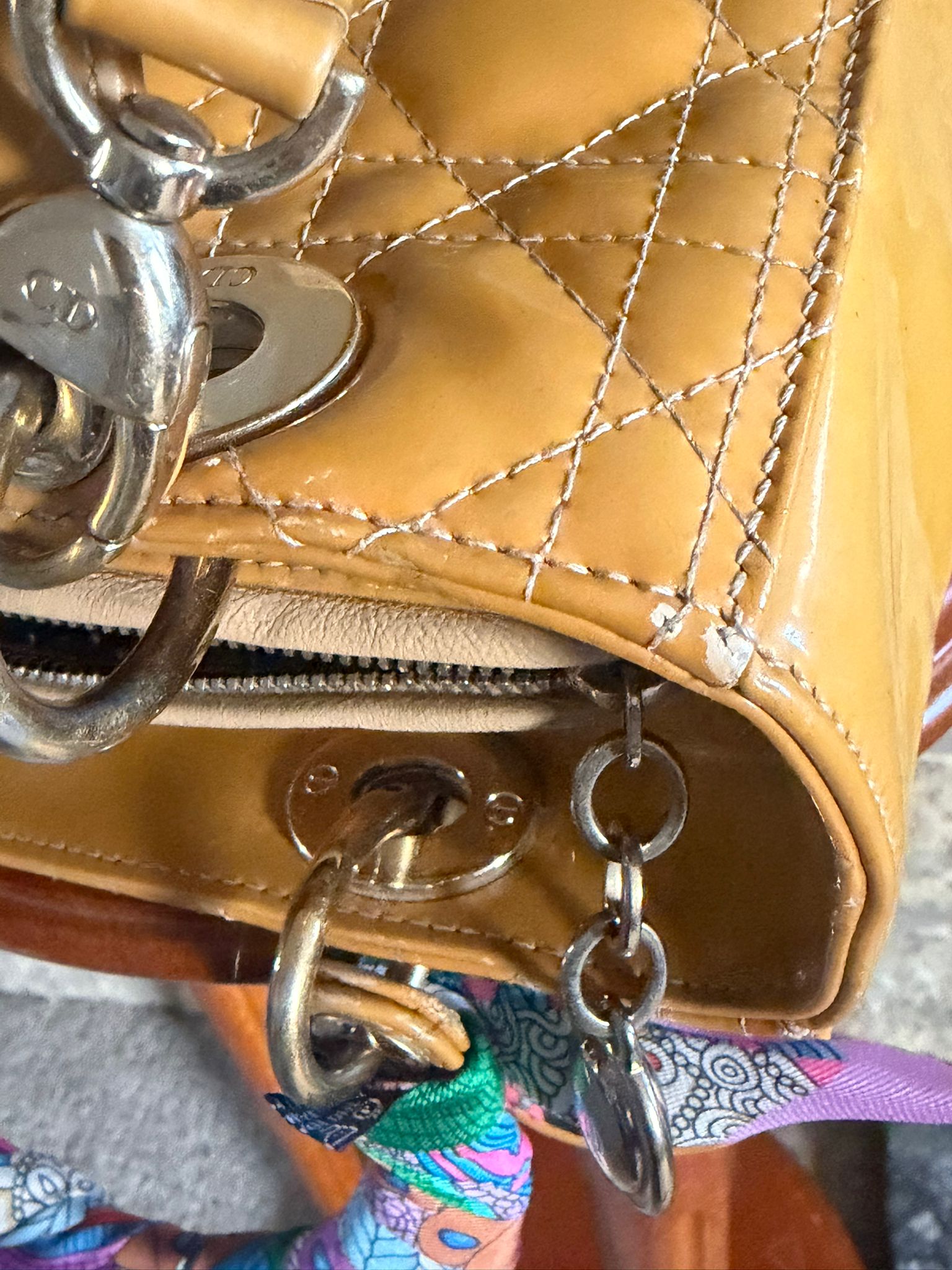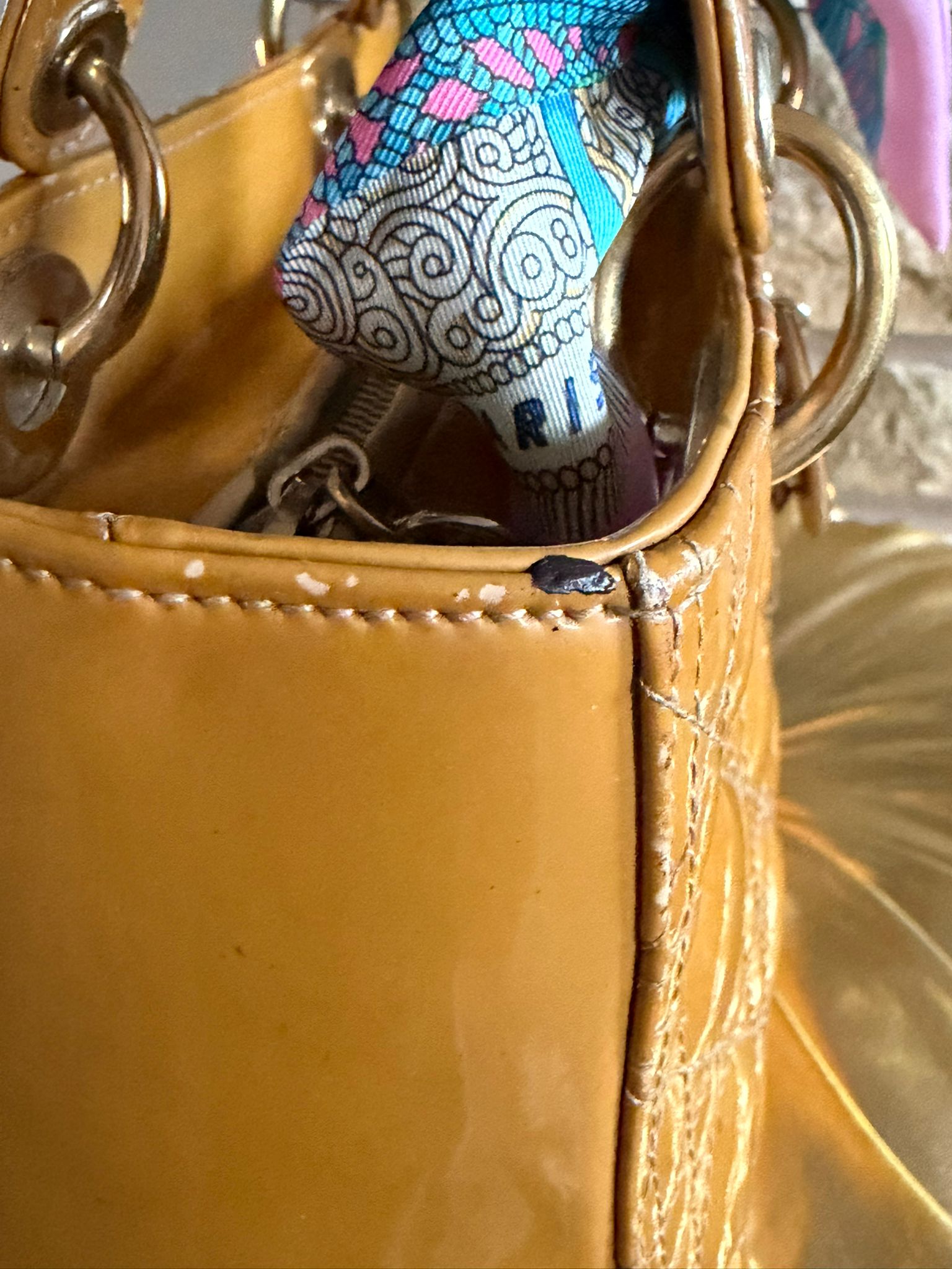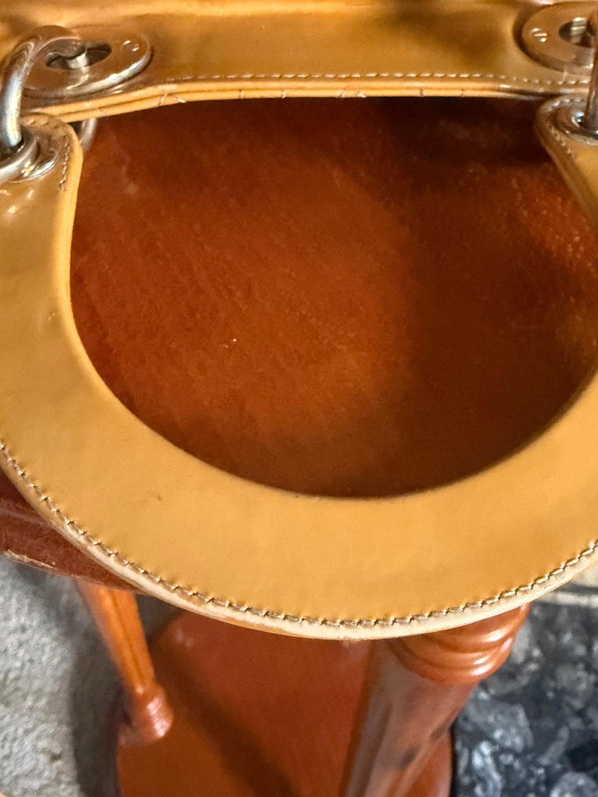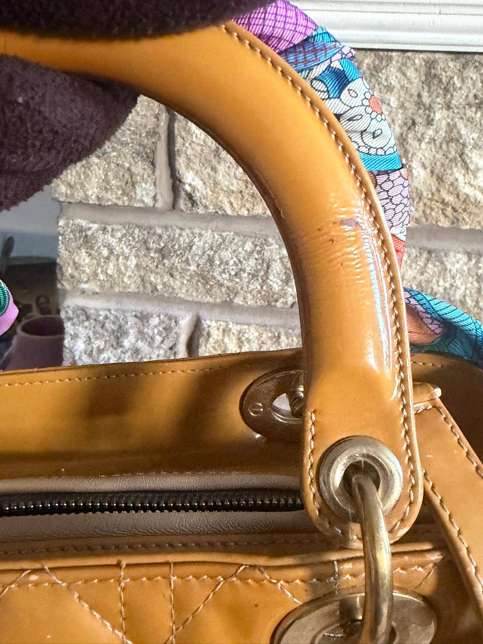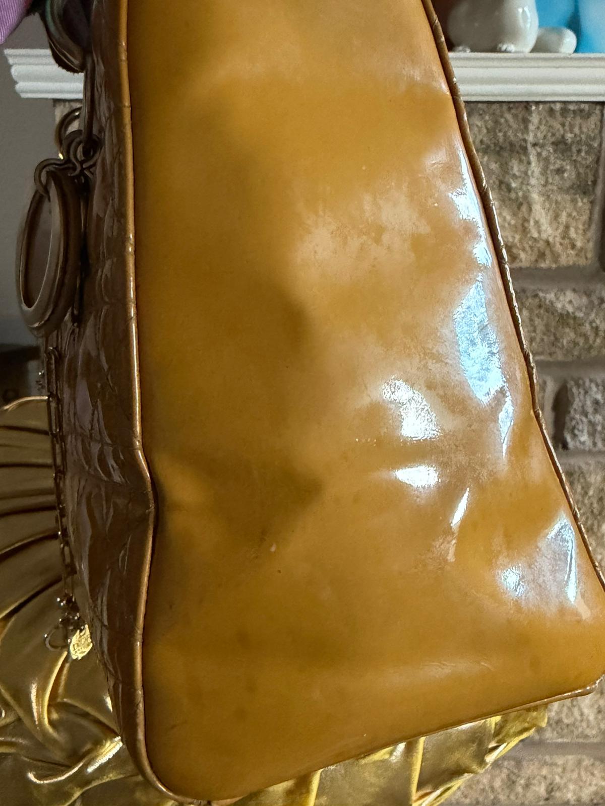 Condition is good. There are stains on the exterior leather and on the handle. There are dents on the side of the bag that can be fixed with proper stuffing. It is still a beautiful bag.