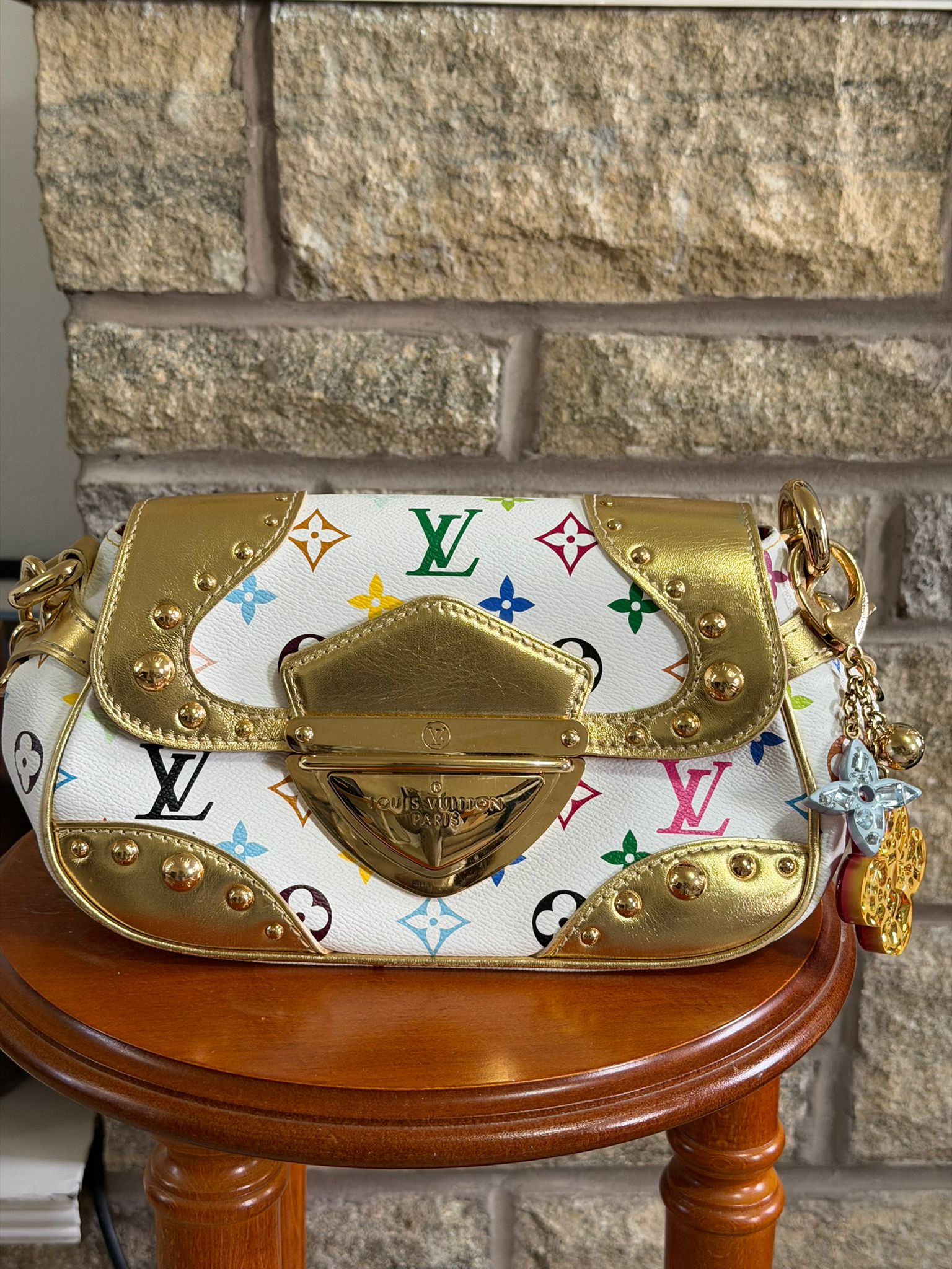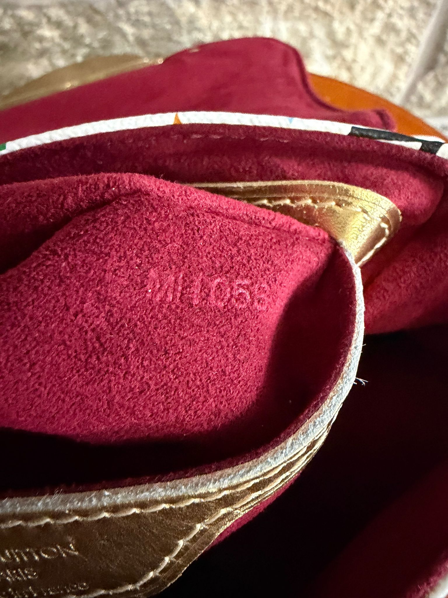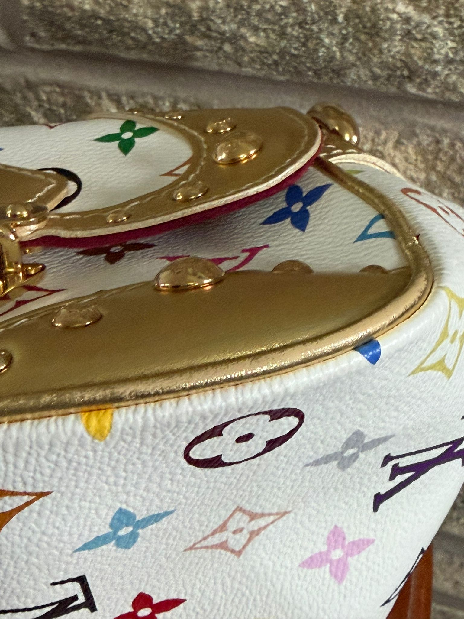 . Condition is excellent. It has a few signs of use on the gold leather but nothing too obvious. The white canvas is still spotless for its age.