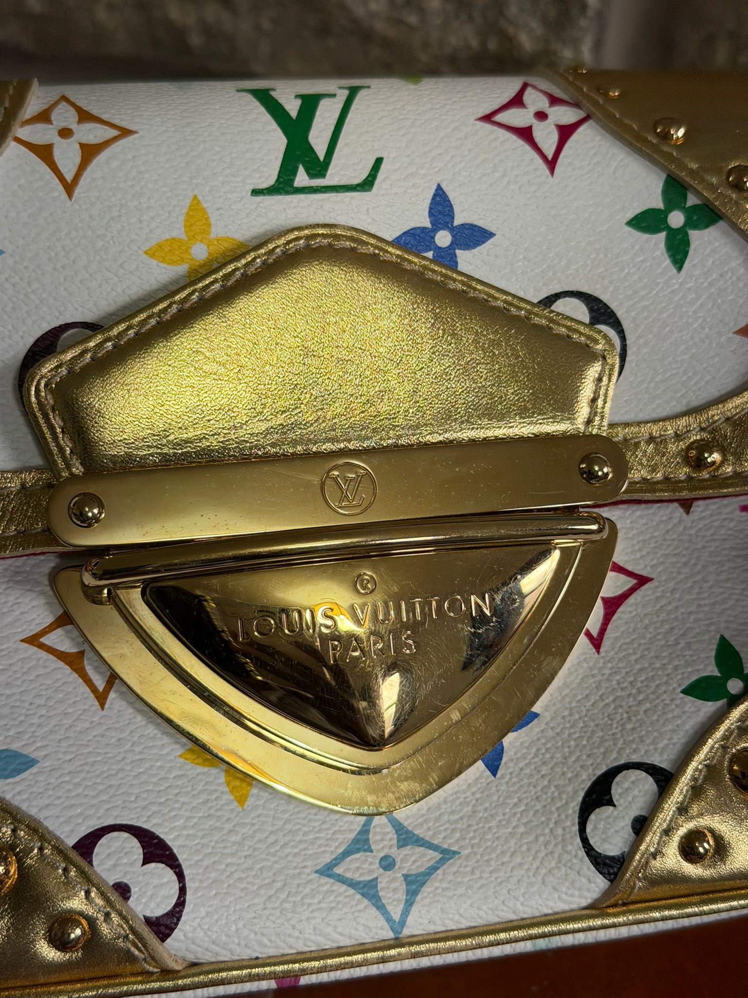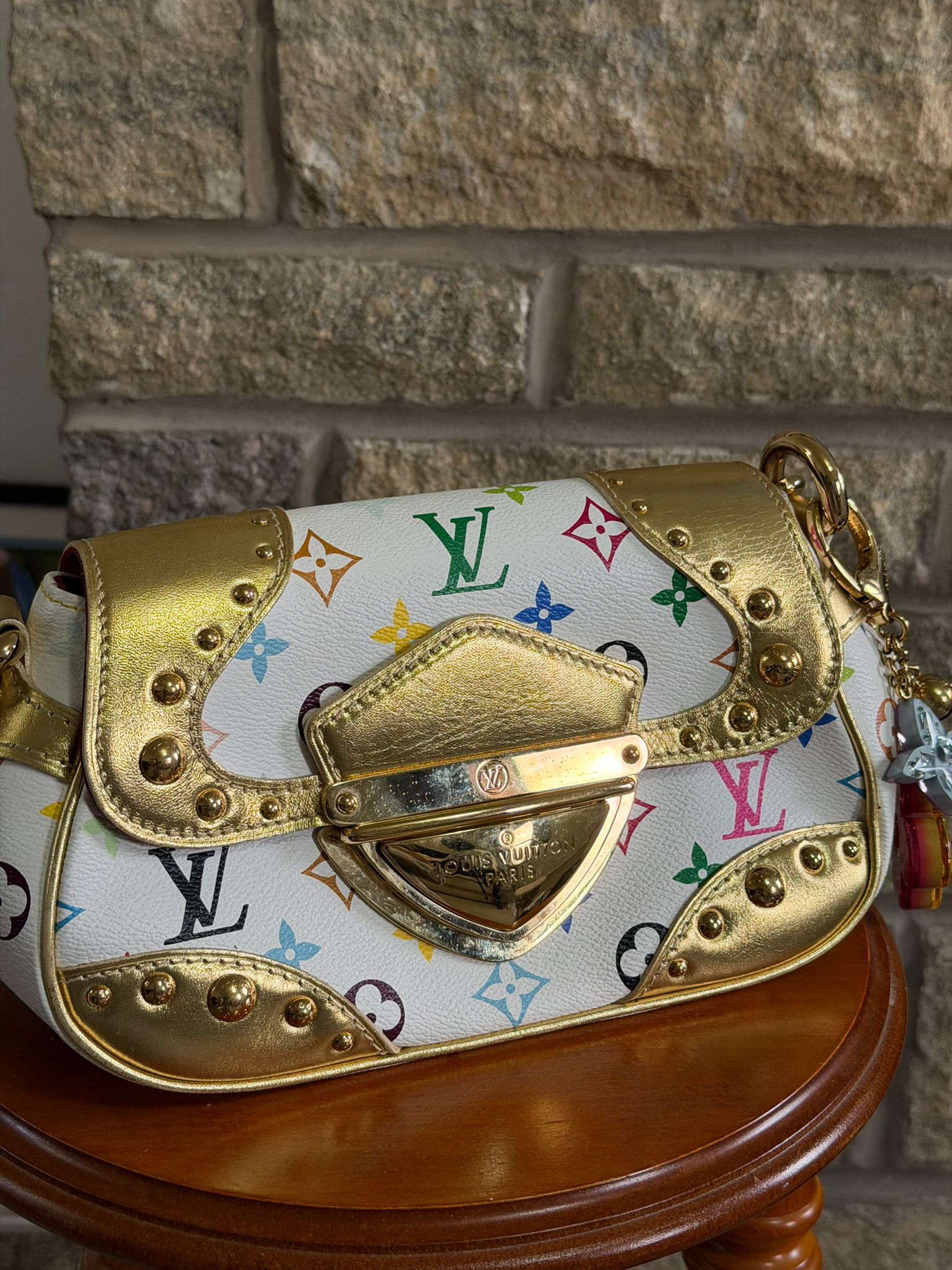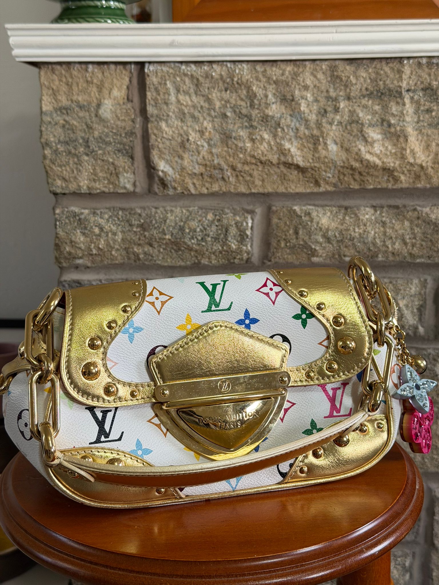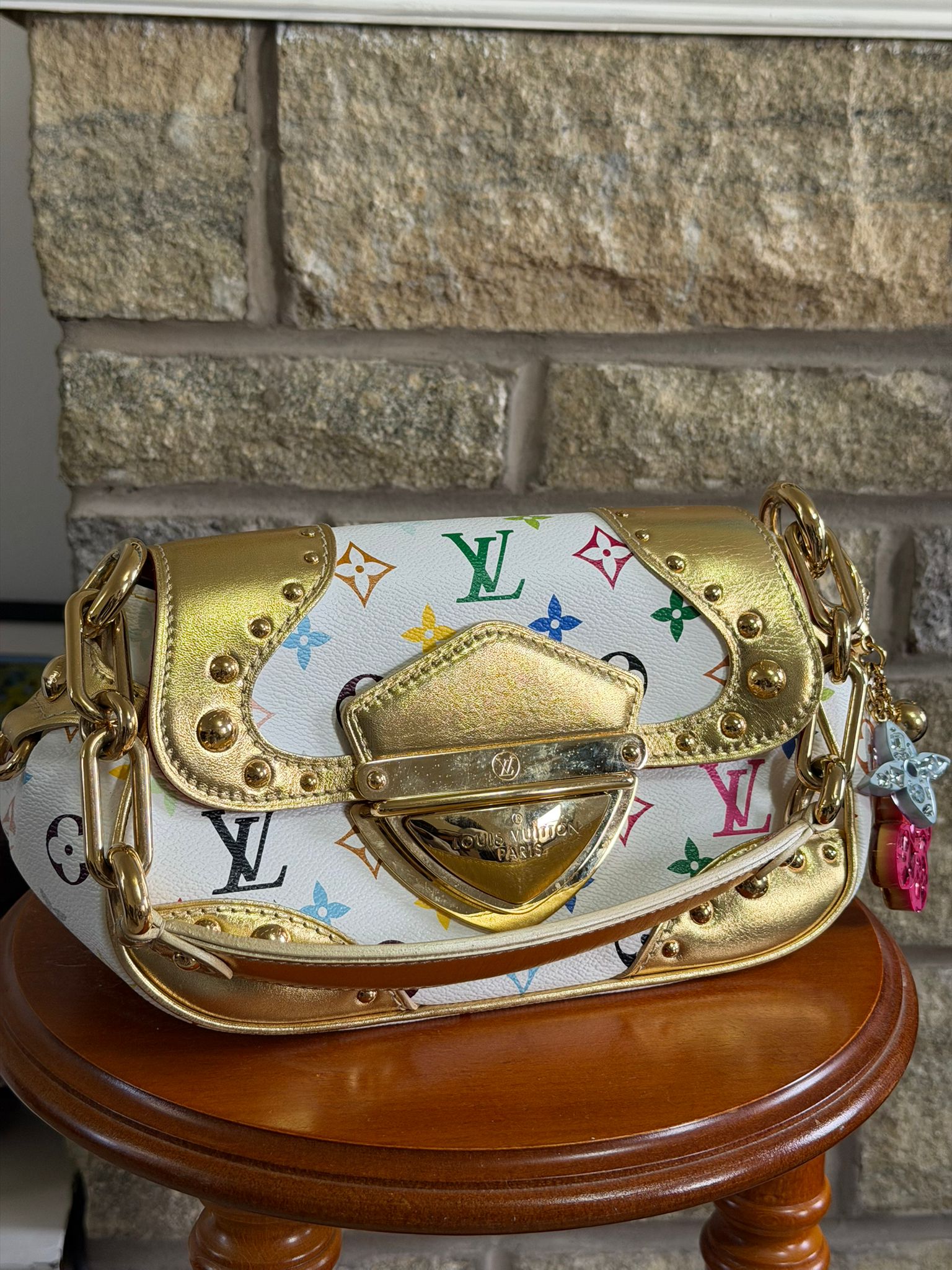 . Condition is excellent. It has a few signs of use on the gold leather but nothing too obvious. The white canvas is still spotless for its age.
