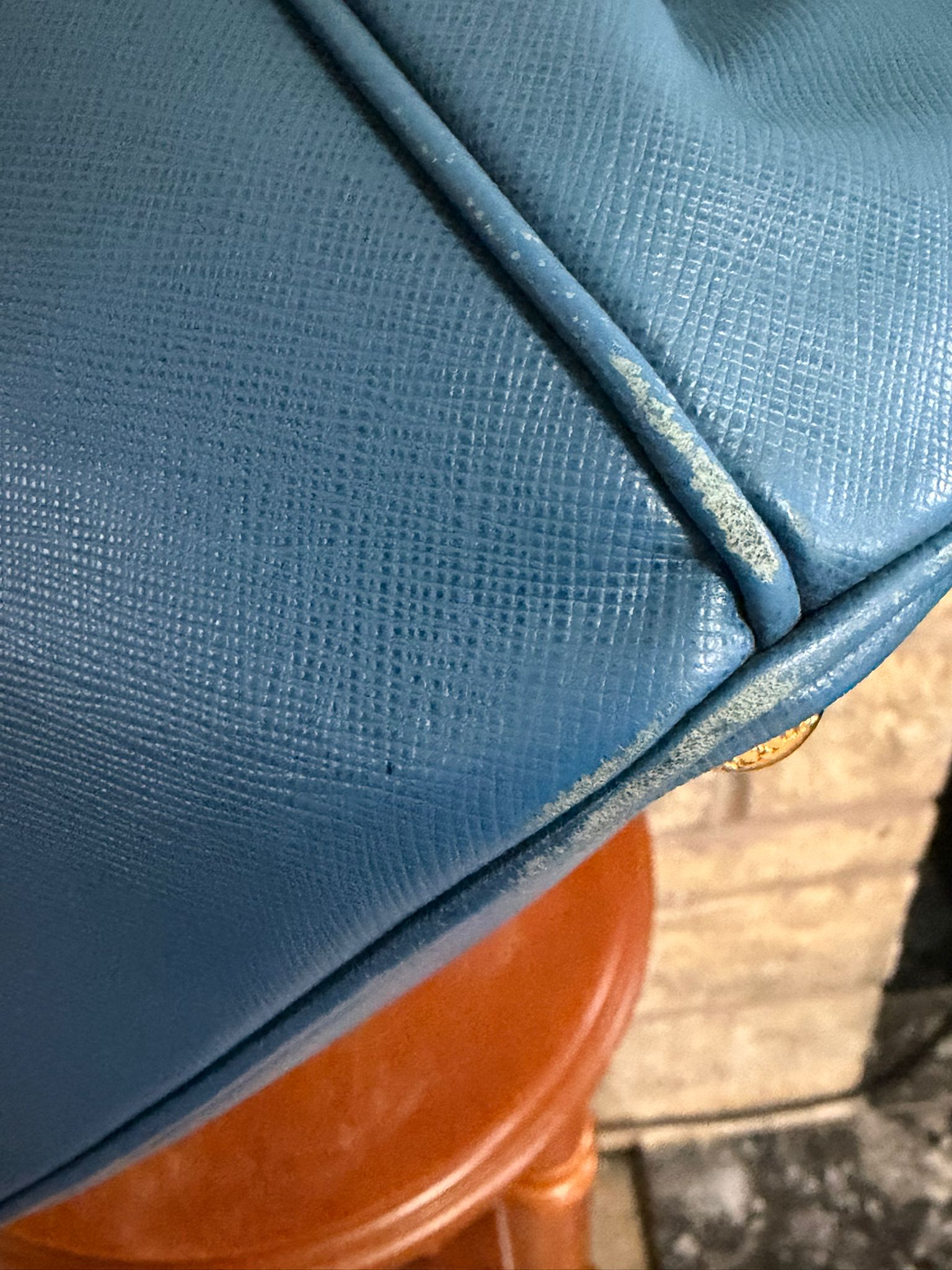 Condition is good. It has some wears to the leather especially at the corners. The hardwares are faded. There is zipper oxidation. The shape has changed a bit.